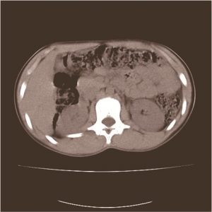 An X-ray was performed in search of fractures or abnormality at this level which was not found. The CT scan revealed the existence of a superior LH over the left side (Figure 2). The laboratory analysis performed did not show any relevant results.