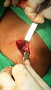 Penrose drainage was placed and independent stitches ensure the closure of the plans up to the skin. No immediate postoperative complications were observed. The patient was released of the institution five days after the procedure. A year after the surgery, the patient was consulted again denying any suggestive symptoms of LH and there were no tenderness or recurrence on physical examination.